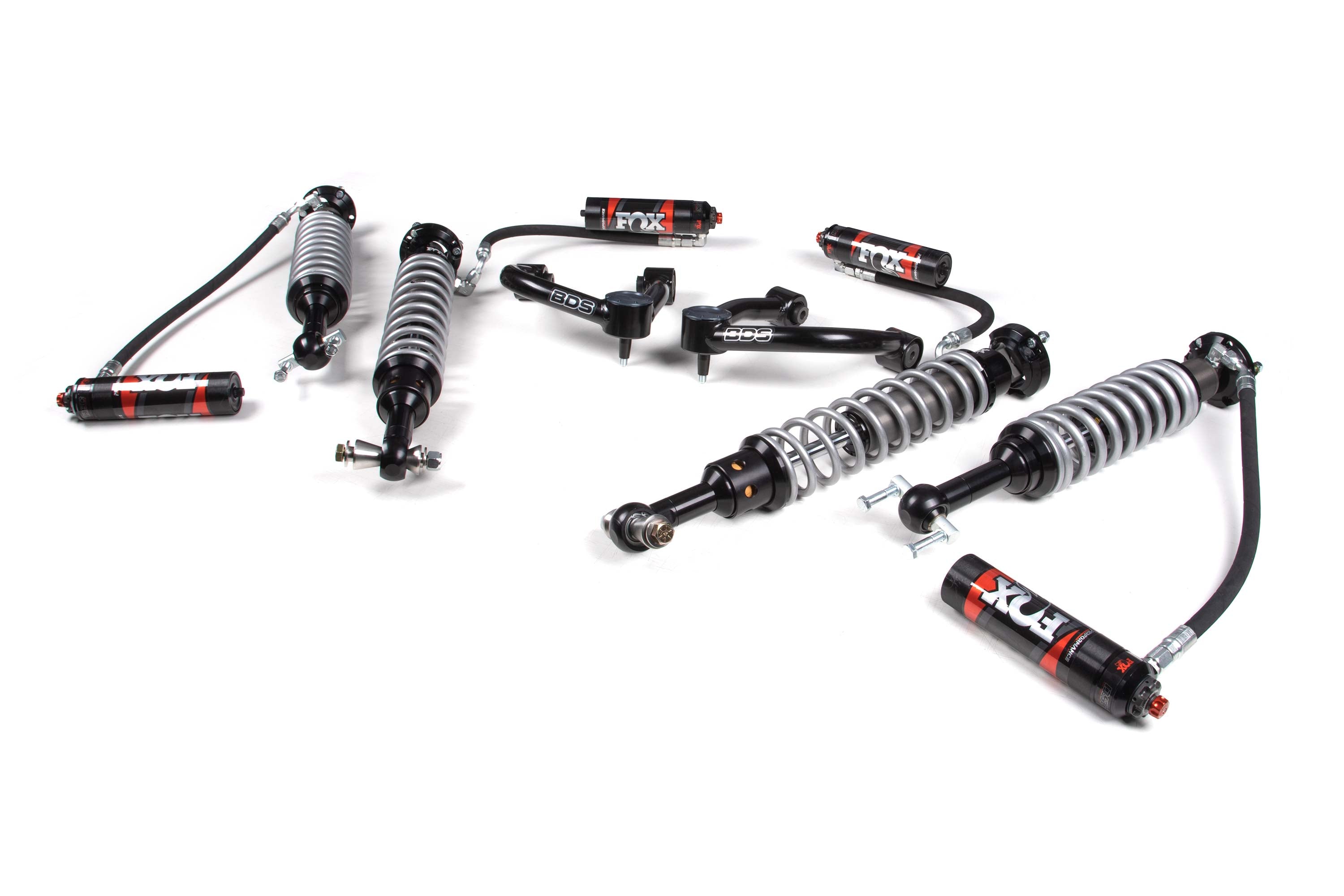 Up front the lift kit includes FOX 2.5 Performance Elite Series remote reservoir coil-over shocks and heavy duty tubular upper control arms for increased strength. In the rear, BDS utilizes a complementary set of FOX 2.5 Performance Elite coil-over shocks for an improved ride.
