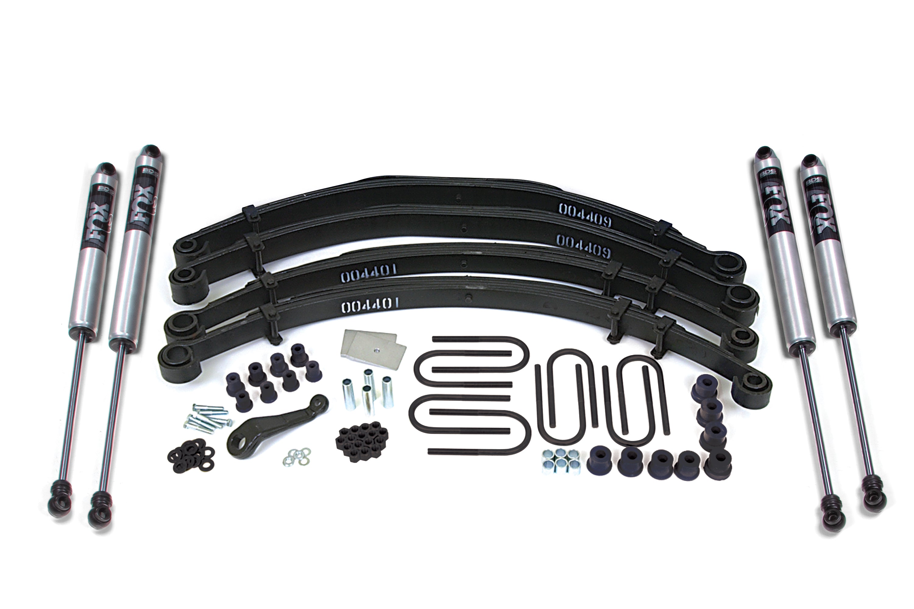 This 4-inch lift kit includes front and rear Glide-Ride leaf springs with new u-bolts, steering pitman arm, transfer case drop, and round out these kits with your choice of specially tuned NX2 nitro series gas shocks or FOX 2.0 IFP performance series gas shocks to offer improved damper performance.