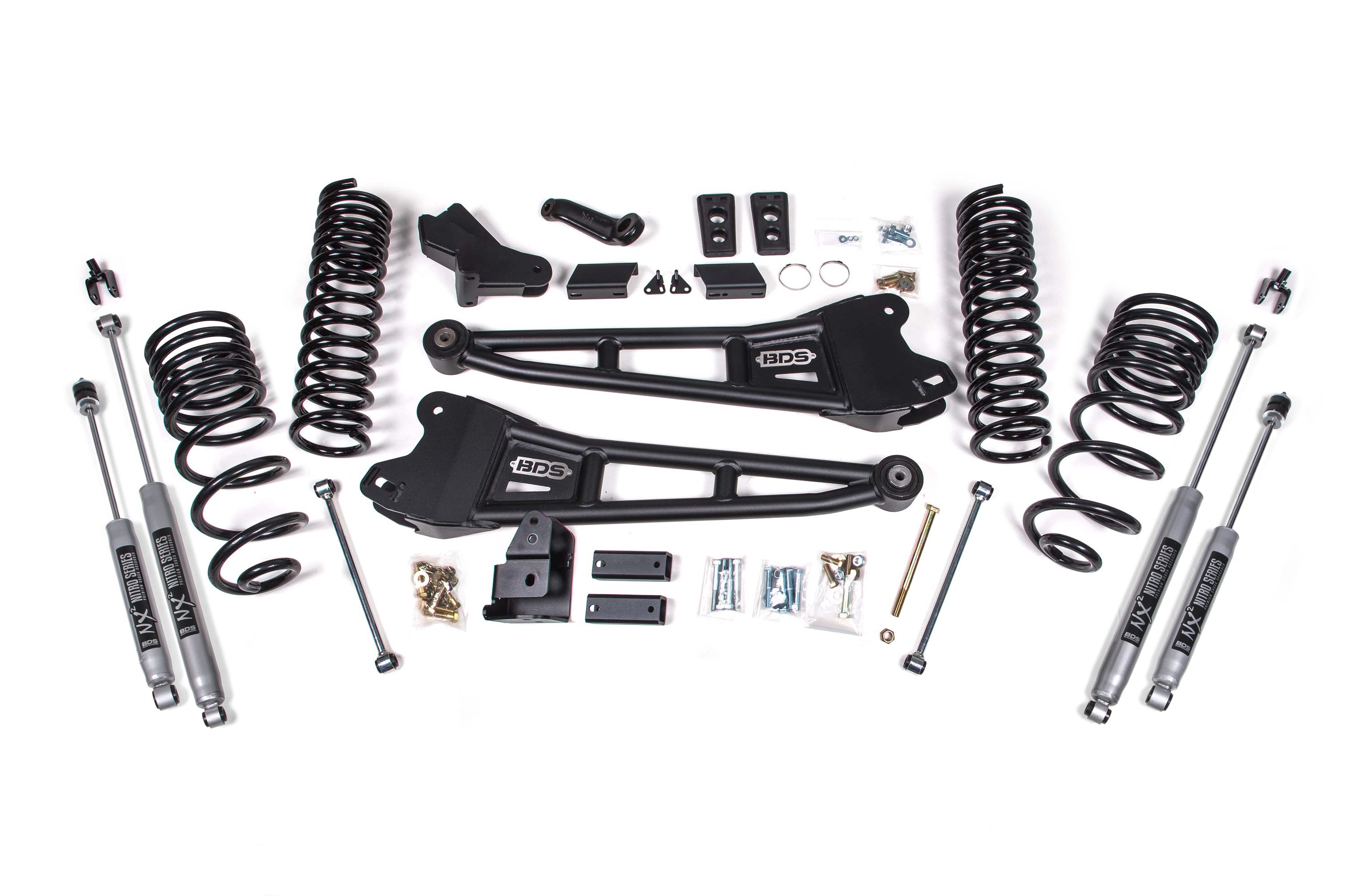 Take your 2014-2018 RAM 2500 diesel powered truck to the next level with this 4-inch radius arm lift kit from BDS Suspension. Designed to improve stance, performance, and capability, this kit includes everything necessary to set your truck up right with clearance for up to 35" tires.